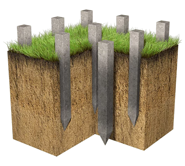 Мы работаем с франшизой Стройматик, которая специализируется на возведении фундаментов на железобетонных сваях.